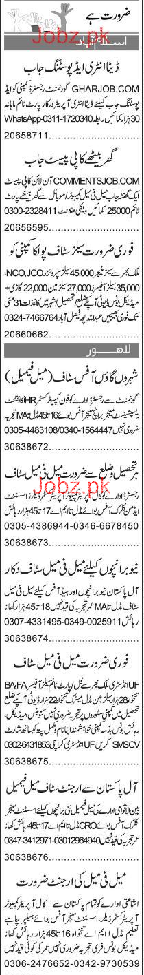 Data Entry Operators, Sales Manager, Sales Officers Wanted