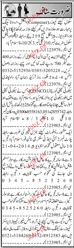 Apply as per details in job advertisement. Login to view further details of how to apply via https://www.jobz.pk online.