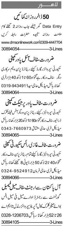Private Company Islamabad, islamabad Islamabad Pakistan invites applications from eligible candidates for the post of manager, supervisor, female staff, retired person, office b oy, data entry operator, call operator, clerk, security supervisor guard, male staff, deo and security supervisor as per advertisement of September 30, 2024 published in daily Express Newspaper. Preferred Education is Bachelor, Intermediate, Matric, Master and Middle etc.