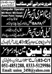 Data Entry & Telephone Operator Jobs In Union Manpower
