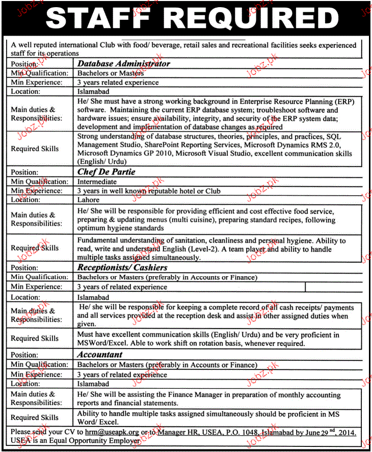 Apply as per details in job advertisement. Login to view further details of how to apply via https://www.jobz.pk online.