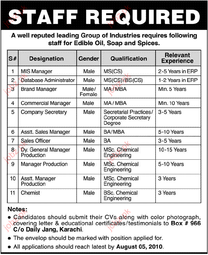 Apply as per details in job advertisement. Login to view further details of how to apply via https://www.jobz.pk online.