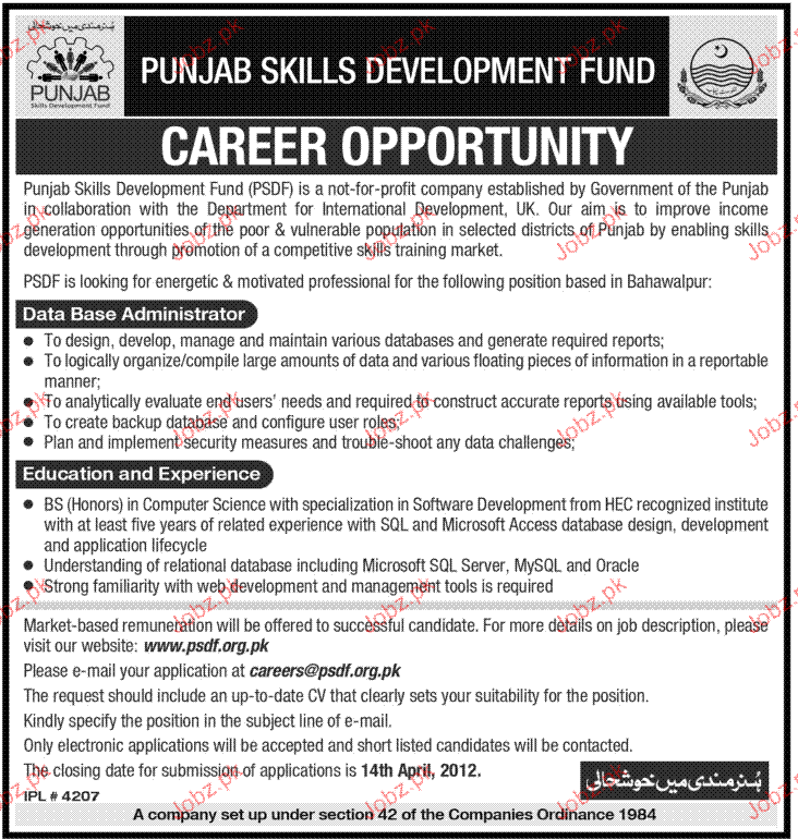 Apply as per details in job advertisement. Login to view further details of how to apply via https://www.jobz.pk online.