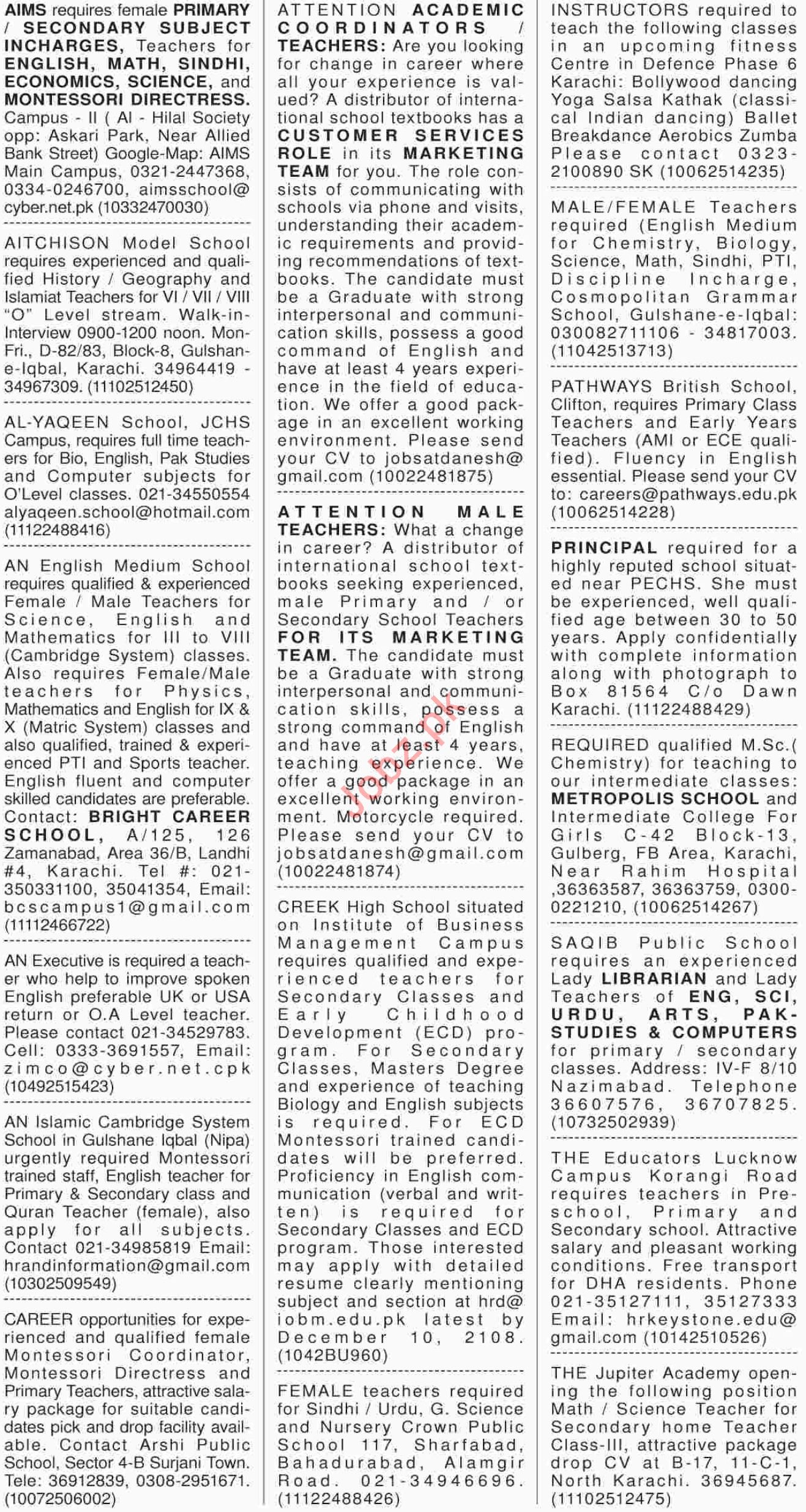 Dawn Newspaper Sunday Teaching Classified Ads 2/12/2018