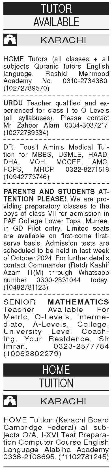 Dawn Sunday Classified Ads 11 Aug 2024 For Academy Staff