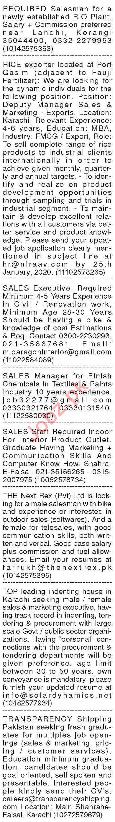 Dawn Sunday Classified Ads 12 Jan 2020 for Sales Staff