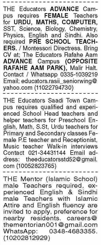 Latest Private School Teaching Posts Karachi 2025