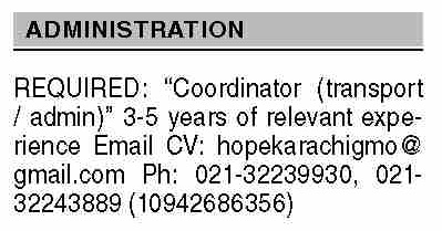 Vacant posts including admin coordinator, coordinator transport and coordinator are announced in Private Company Karachi, karachi Sindh Pakistan as per 14 March 2022 advertisement in daily Dawn Newspaper. Bachelor and Intermediate etc. educational qualification will be preferred.