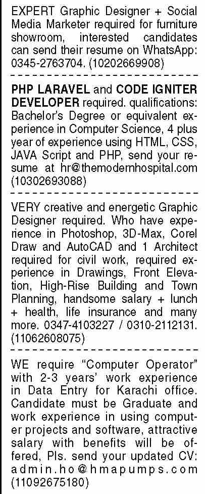 Latest Classifieds jobs in Private Company in Computer and others can be applied till 9 April 2022 or as per closing date in newspaper ad. Read complete ad online to know how to apply on latest Private Company job opportunities.