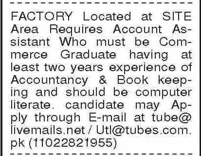 Latest Factory Accounting Posts Karachi 2025