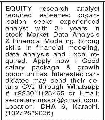 Private Company invites applications for job positions advertised in daily Dawn dated 15 September 2025 for following vacancies in DHA Phase 6 Karachi, karachi Sindh Pakistan.