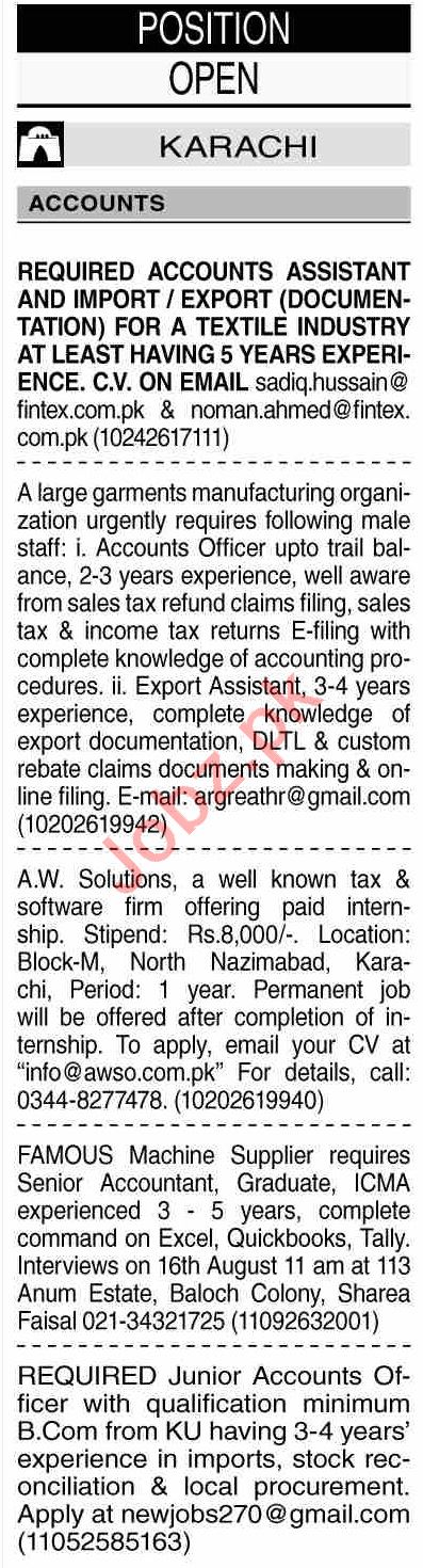 Dawn Sunday Classified Ads 15 August 2021 For Accounts Staff