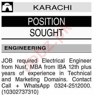 Engineering Company Karachi, karachi Sindh Pakistan invites applications from eligible candidates for the post of electrical engineer and engineer as per advertisement of January 16, 2023 published in daily Dawn Newspaper. Intermediate and Bachelor etc. educational qualification will be preferred.