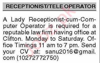Latest Law Firm Telephone Operator Posts Karachi 2025