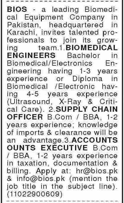 BIOS Serving Humanity with Technology is looking for candidates for following posts as per job advertisement published in daily Dawn Newspaper of November 17, 2025 for location Karachi, karachi Sindh Pakistan: