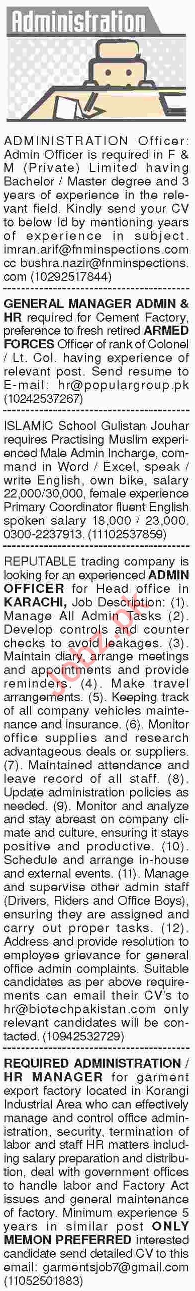 Dawn Sunday Classified Ads 16th June 2019 For Administration