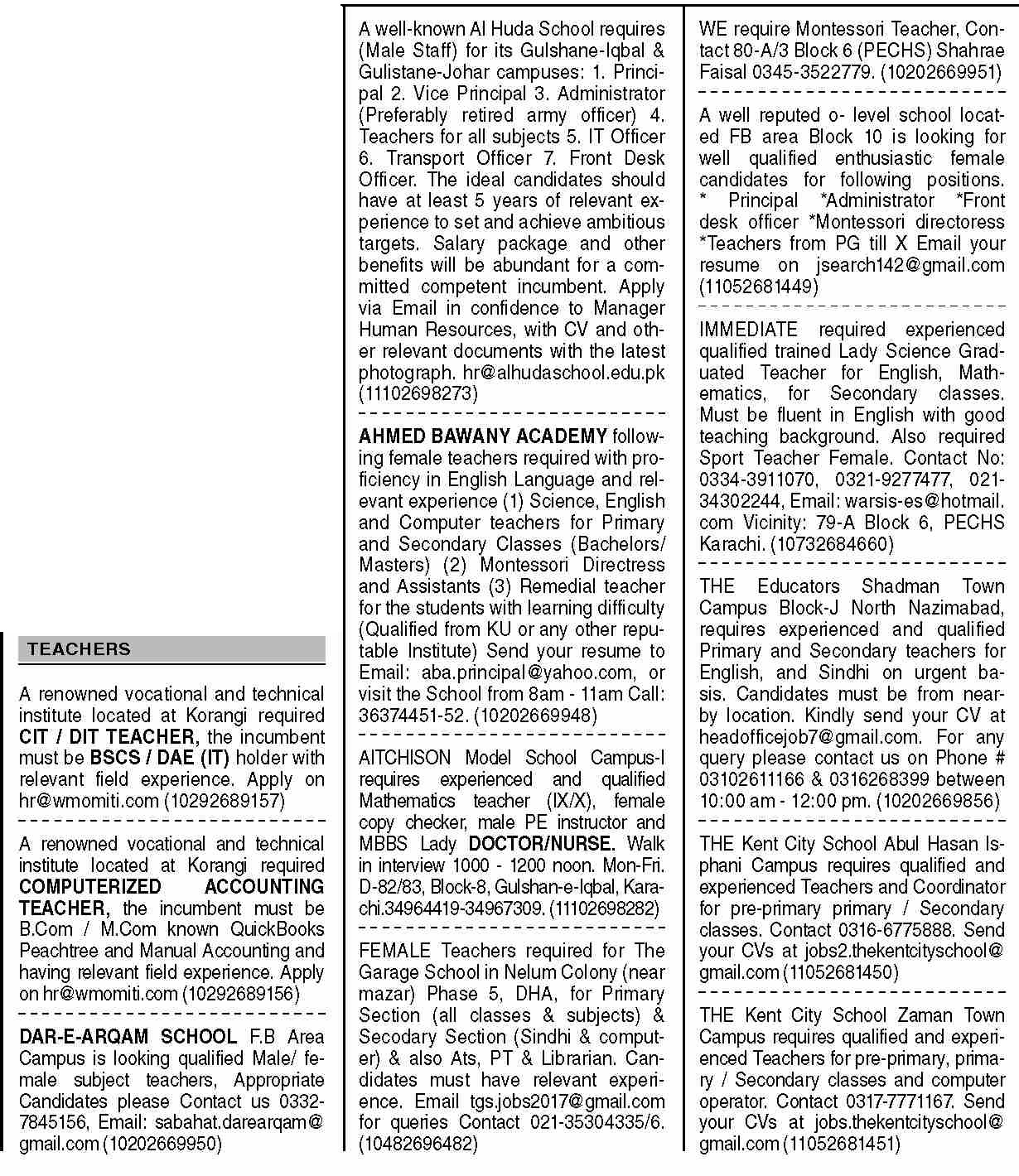 Dawn Sunday Classified Ads 17 April 2022 For Teaching Staff