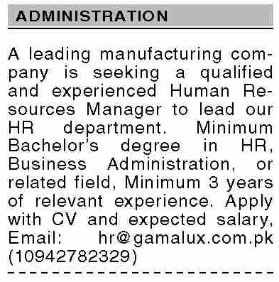 Gamalux Oleochemicals PVT LTD is looking for candidates for following posts as per job advertisement published in daily Dawn Newspaper of August 18, 2025 for location Karachi, karachi Sindh Pakistan: