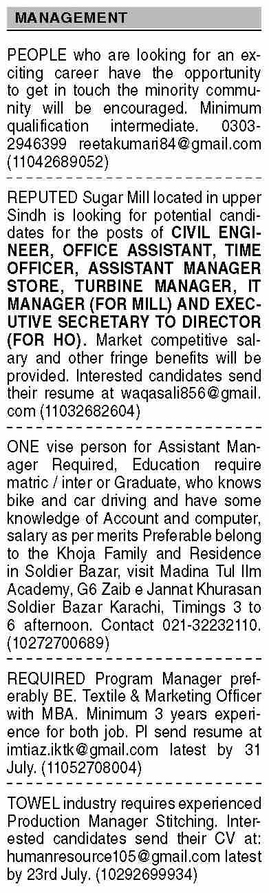 Dawn Sunday Classified Ads 17 July 2022 For Management Staff