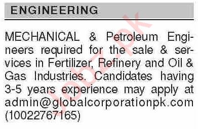 Global Corporation latest Classifieds Engineering jobs and others can be applied till April 28, 2024 or as per closing date in newspaper ad. Read complete ad online to know how to apply on latest Global Corporation job opportunities. Learn today skills like Petroleum Engineering, Engineering and Mechanical Engineering to apply confidently on these Global Corporation jobs.