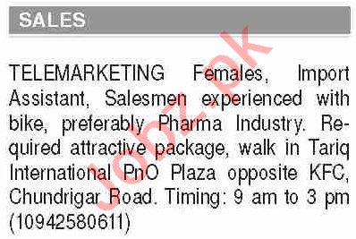 Dawn Sunday Classified Ads 17 May 2020 for Sales Staff
