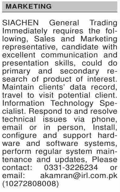 Dawn Sunday Classified Ads 17 Nov 2024 For Marketing Staff