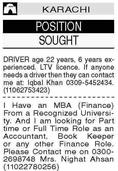 Private Company jobs advertisement dated about 19 August 2024 in daily Dawn Newspaper invites application for the vacant post of driver, ltv driver and finance manager in Karachi, karachi Sindh Pakistan. Middle, Matric and MBA etc. educational qualification will be preferred.