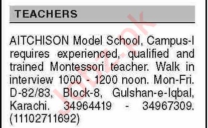 Private School is looking for candidates for following posts as per job advertisement published in daily Dawn Newspaper of December 19, 2022 for location Karachi, karachi Sindh Pakistan: