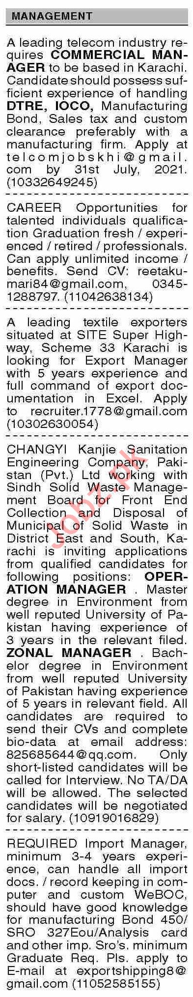 Dawn Sunday Classified Ads 18 July 2021 for Management