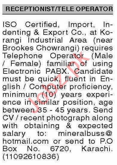 Latest Private Company Telephone Operator Posts Karachi 2025