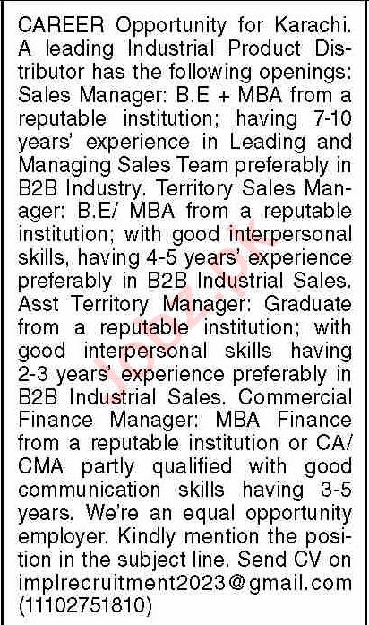 Private Company is looking for candidates for following posts as per job advertisement published in daily Dawn Newspaper of November 20, 2023 for location Karachi, karachi Sindh Pakistan: