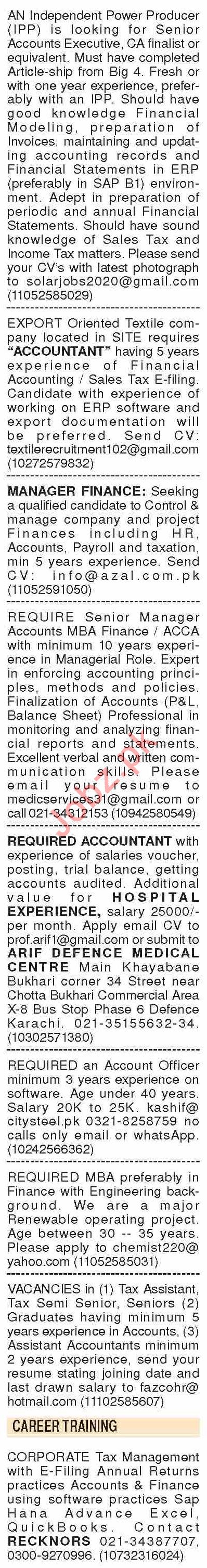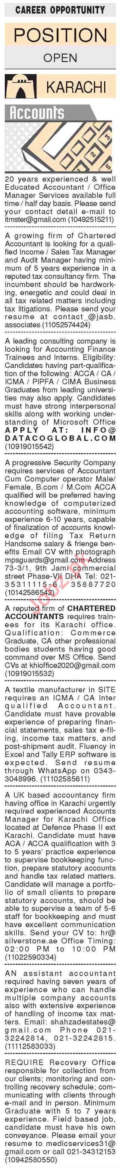Dawn Sunday Classified Ads 1st March 2020 for Accounts
