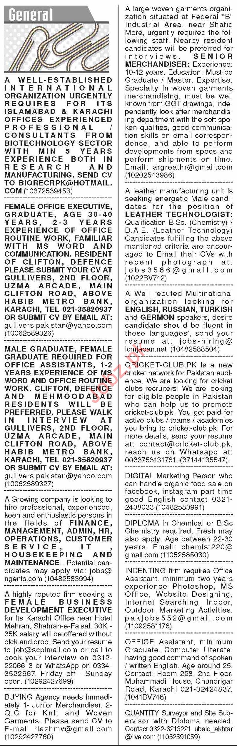 Dawn Sunday Classified Ads 1st March 2020 for General Staff