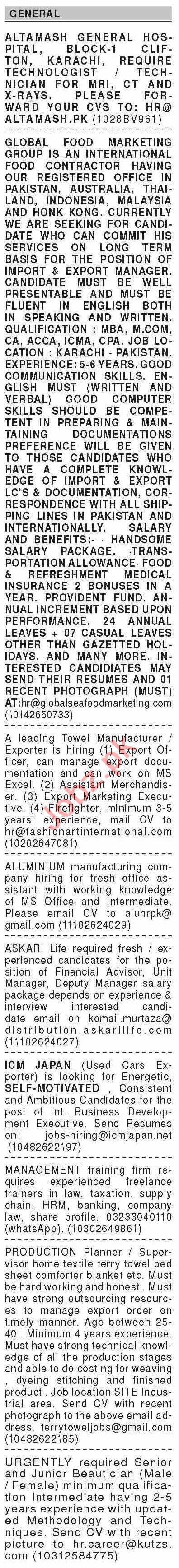 Dawn Sunday Classified Ads 1st Nov 2020 For General Staff