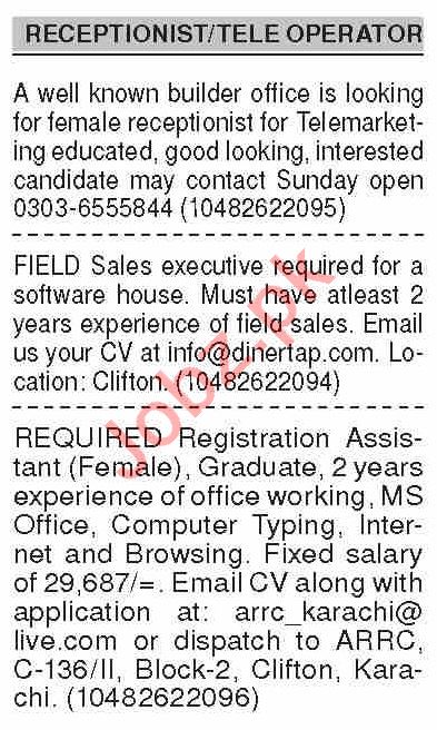 Dawn Sunday Classified Ads 1st Nov 2020 for Receptionist