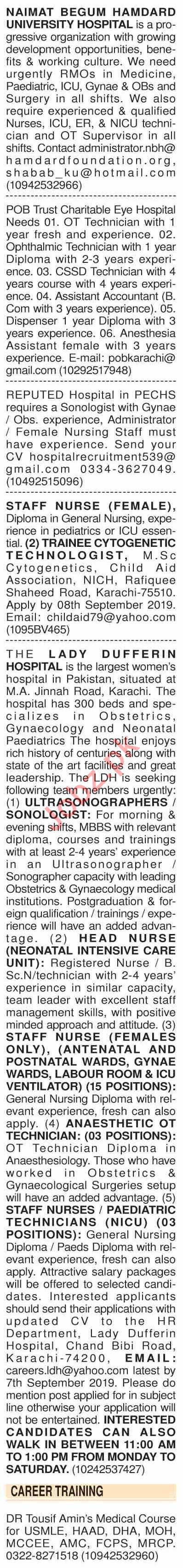 Dawn Sunday Classified Ads 1st Sep 2019 For Medical Staff