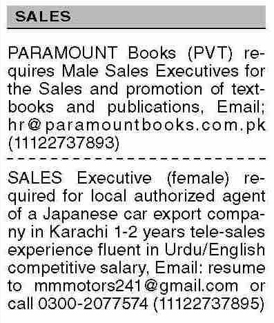 Marketing Company invites applications for job positions advertised in daily Dawn dated 3 February 2025 for following vacancies in Karachi, karachi Sindh Pakistan.