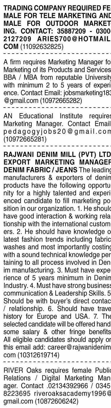 Dawn Sunday Classified Ads 2 Jan 2022 For Management Staff