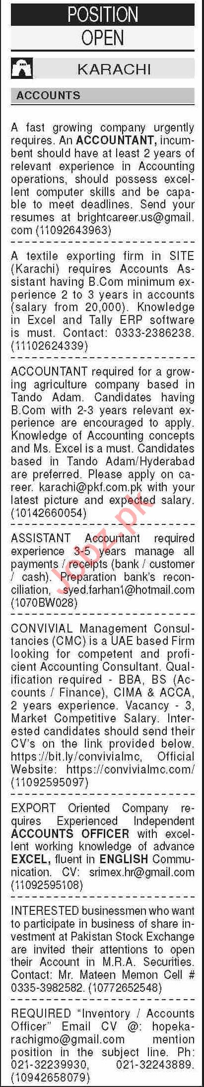 Dawn Sunday Classified Ads 20 Dec 2020 for Accounts Staff