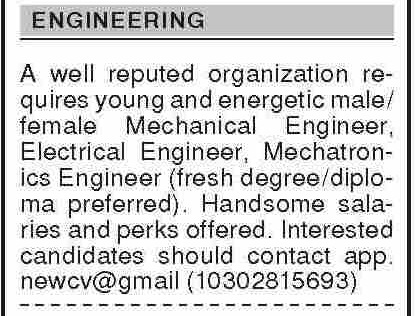 Engineering Company invites applications for job positions advertised in daily Dawn dated 21 July 2025 for following vacancies in Karachi, karachi Sindh Pakistan.