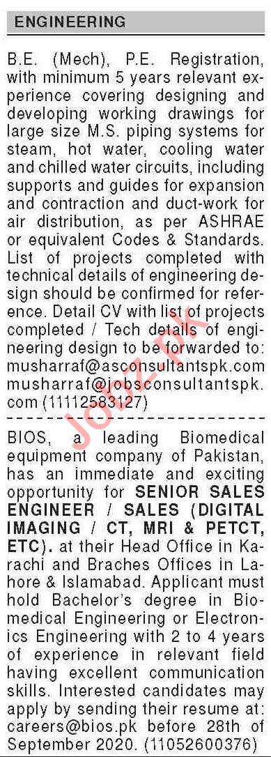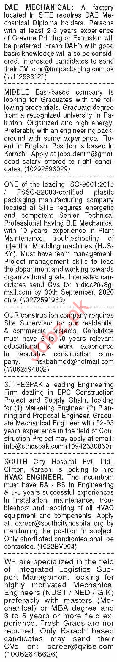 Dawn Sunday Classified Ads 20 Sept 2020 For Engineering