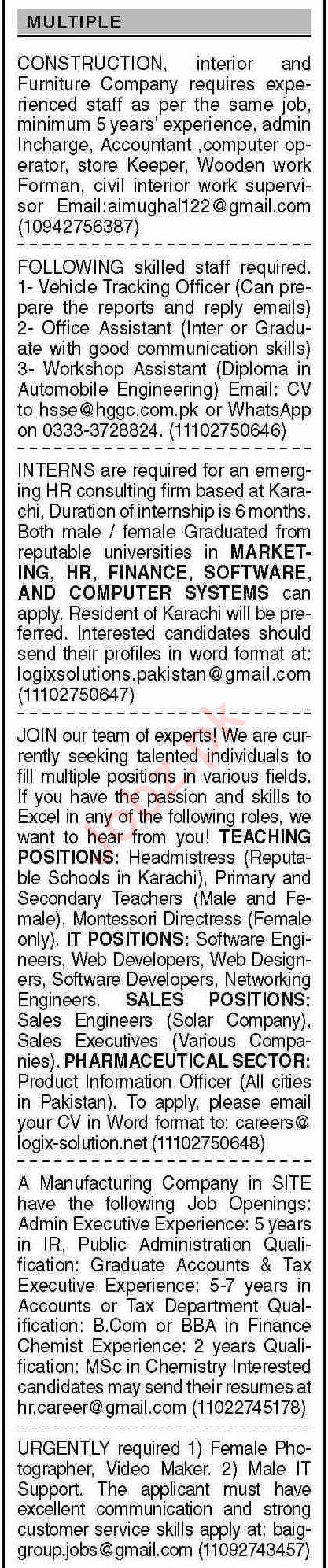 Dawn Sunday Classified Ads 21 May 2023 for Multiple Staff