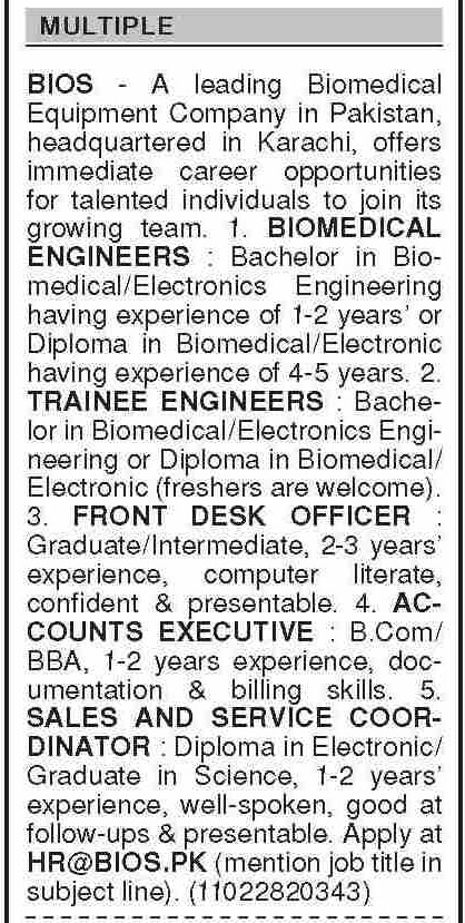 BIOS Serving Humanity with Technology is looking for candidates for following posts as per job advertisement published in daily Dawn Newspaper of September 22, 2025 for location Karachi, karachi Sindh Pakistan: