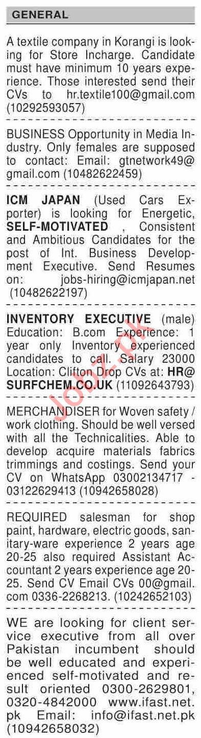 Dawn Sunday Classified Ads 22 Nov 2020 for General Staff