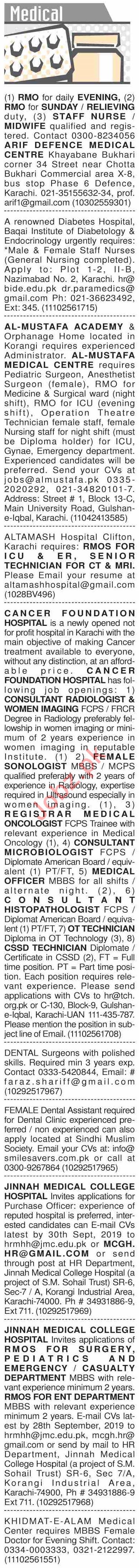 Dawn Sunday Classified Ads 22nd Sep 2019 for Medical Staff