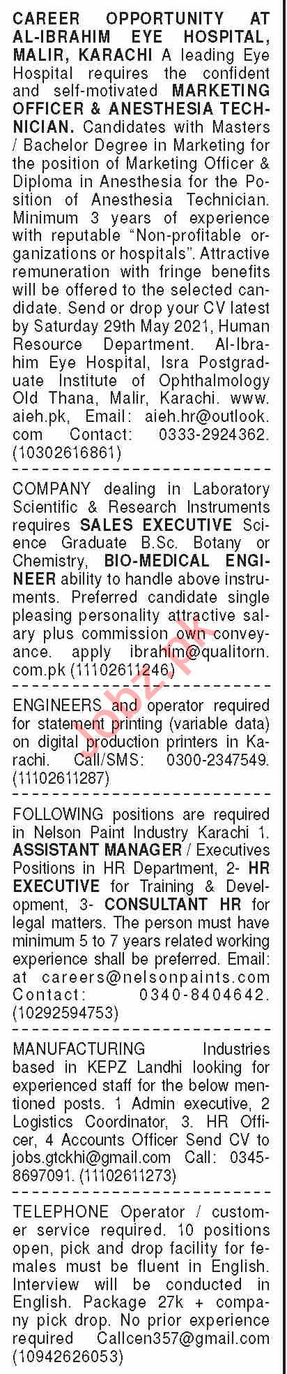 Dawn Sunday Classified Ads 23 May 2021 for Multiple Staff