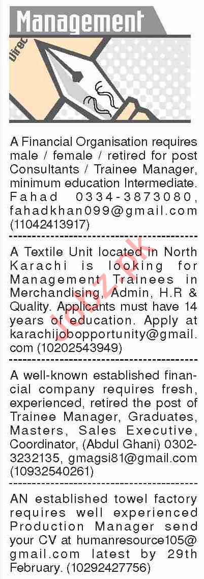 Dawn Sunday Classified Ads 23rd Feb 2020 for Management