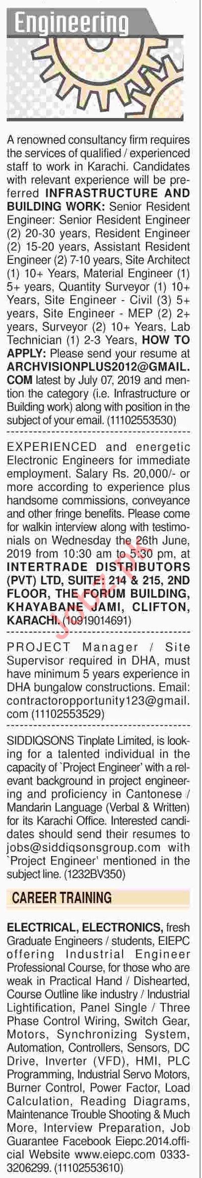 Vacancies in Engineering Company Advertisement June 2019