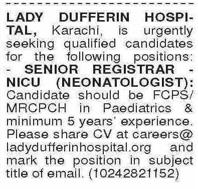Lady Dufferin Hospital invites applications for job positions advertised in daily Dawn dated 25 August 2025 for following vacancies in Nishtar Road (Lawrence Road) Karachi, karachi Sindh Pakistan.