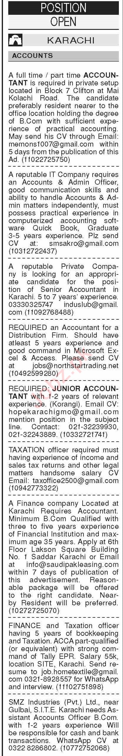Private Company jobs advertisement dated about 25 December 2023 in daily Dawn Newspaper invites application for the vacant post of accountant, senior accountant, accounts officer, taxation officer, junior accountant, admin officer and assistant accounts officer in Karachi, karachi Sindh Pakistan. Candidates with BBA, Bachelor, B.com, M.com, ACCA and MBA etc. educational background will be preferred.